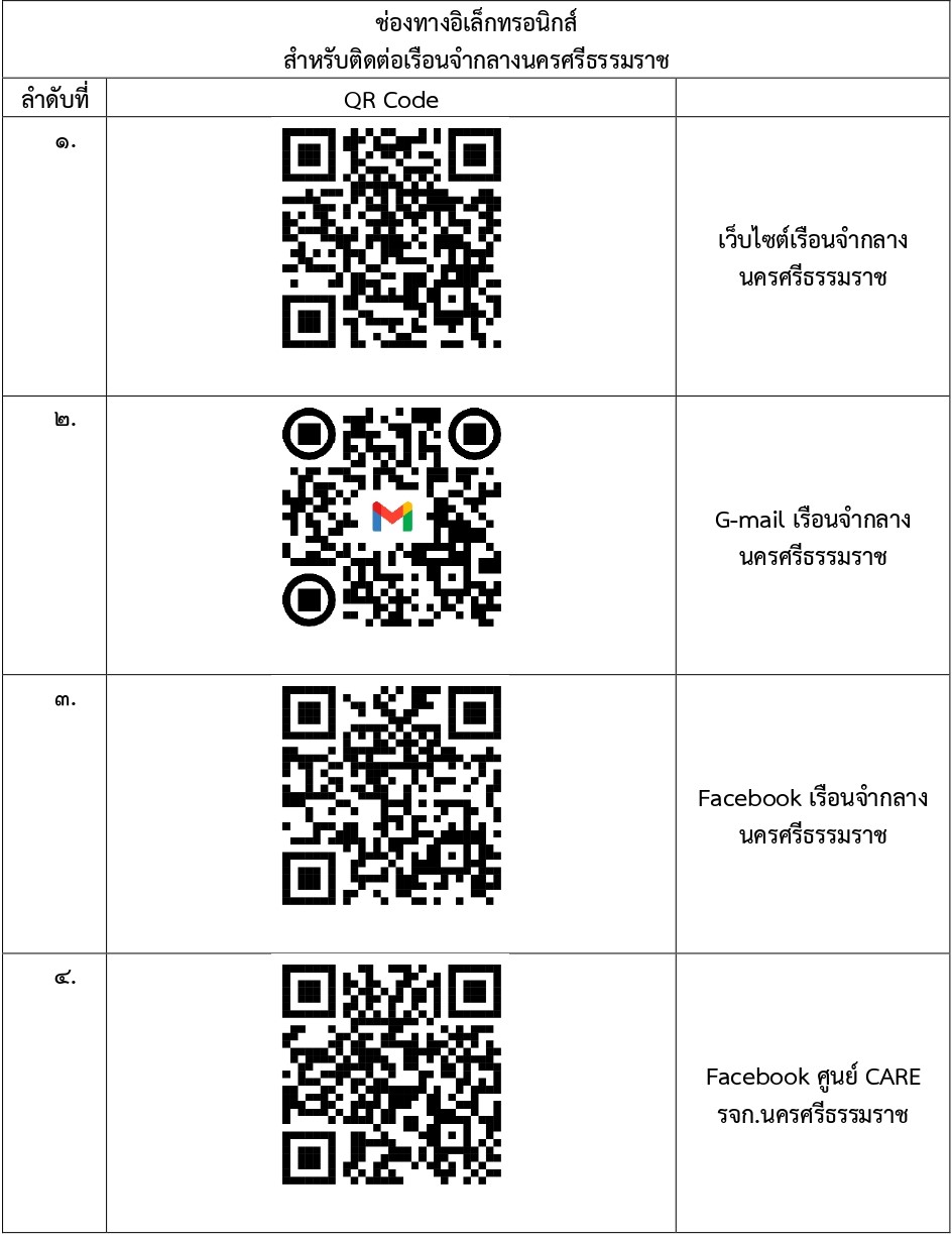 เรือนจำกลางนครศรีธรรมราช ขอประชาสัมพันธ์ช่องทางอิเล็กทรอนิกส์สำหรับติดต่อเรือนจำกลางนครศรีธรรมราช