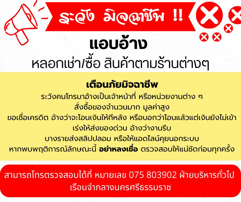 ติดต่อเพื่อตรวจสอบ โทร 075 803902 ฝ่ายบริหารทั่วไป เรือนจำกลางนครศรีธรรมราช